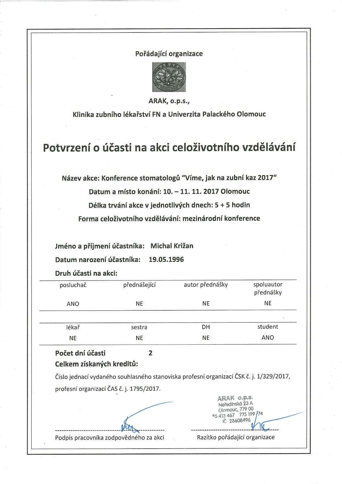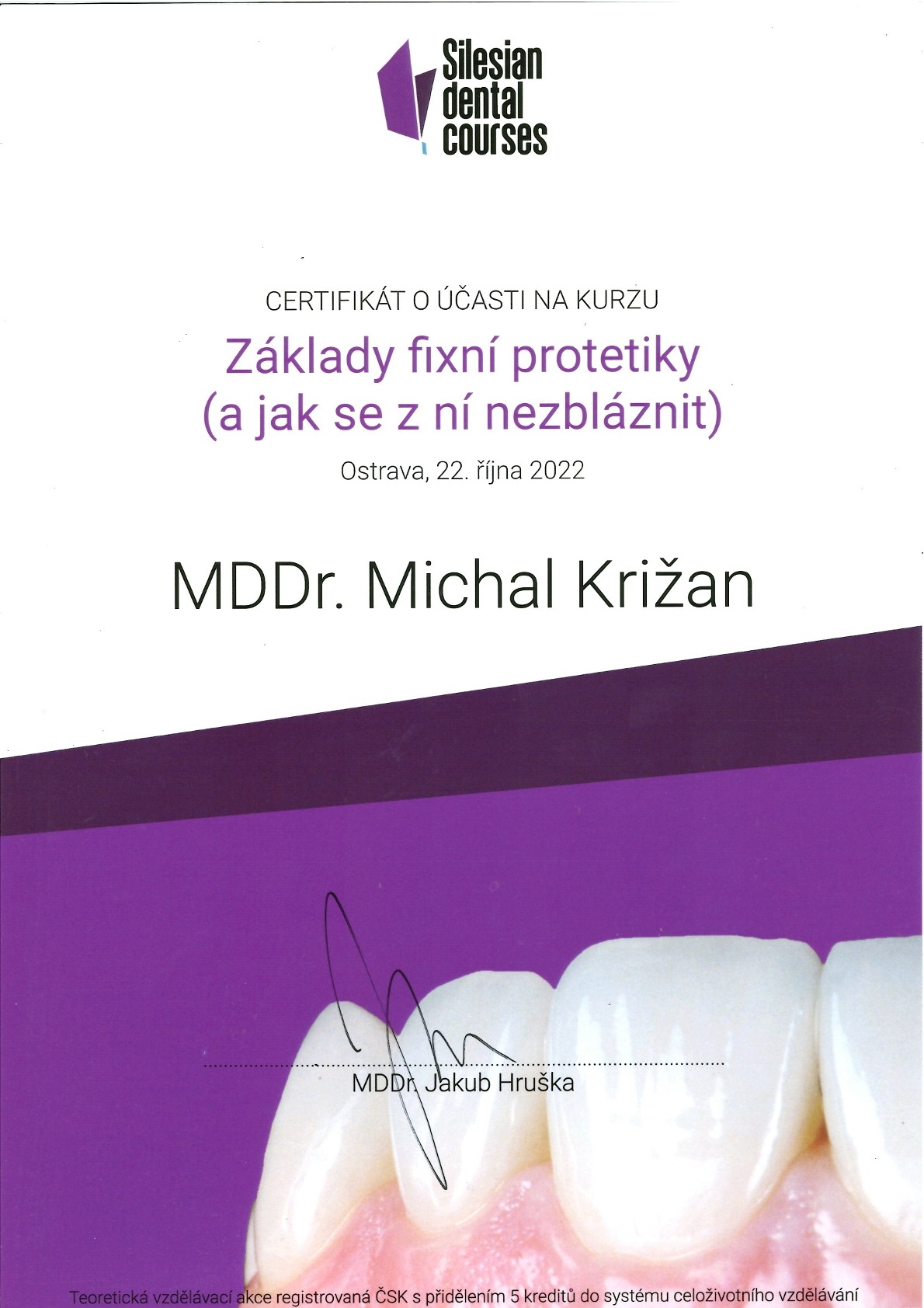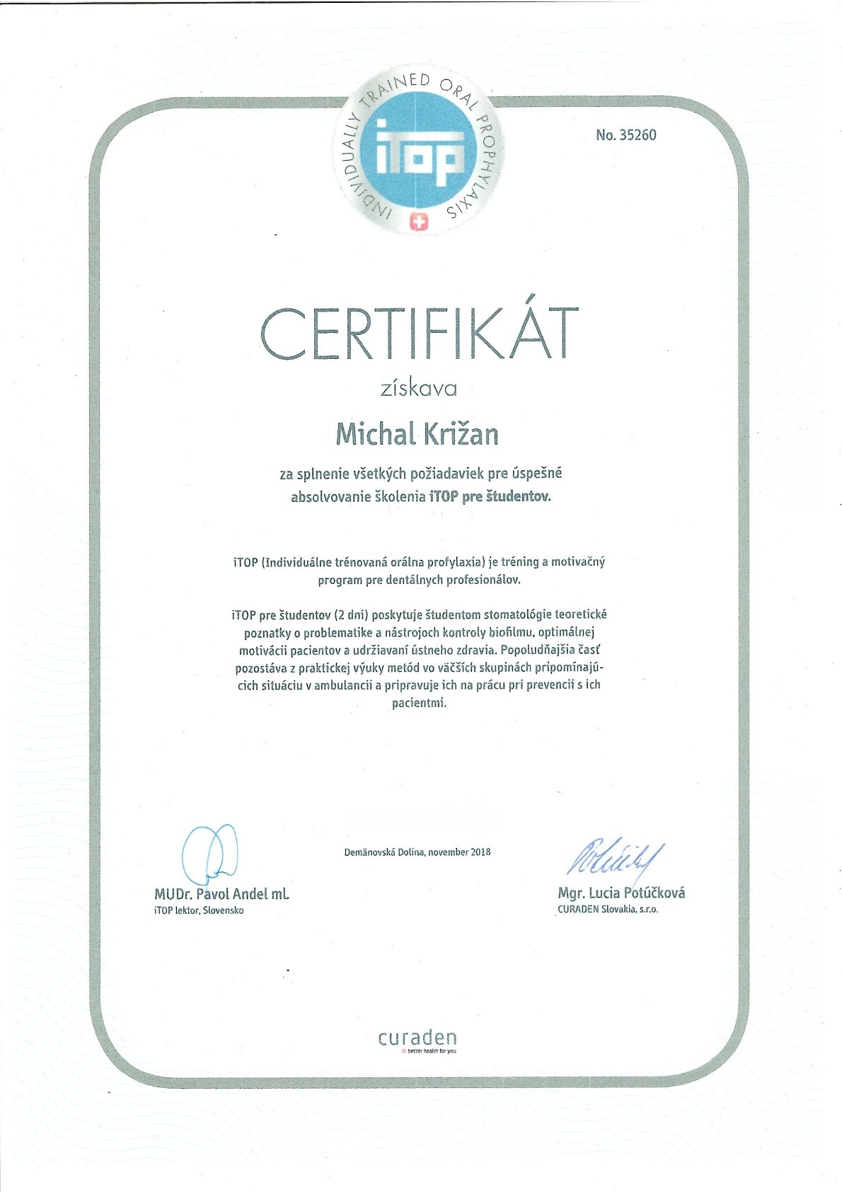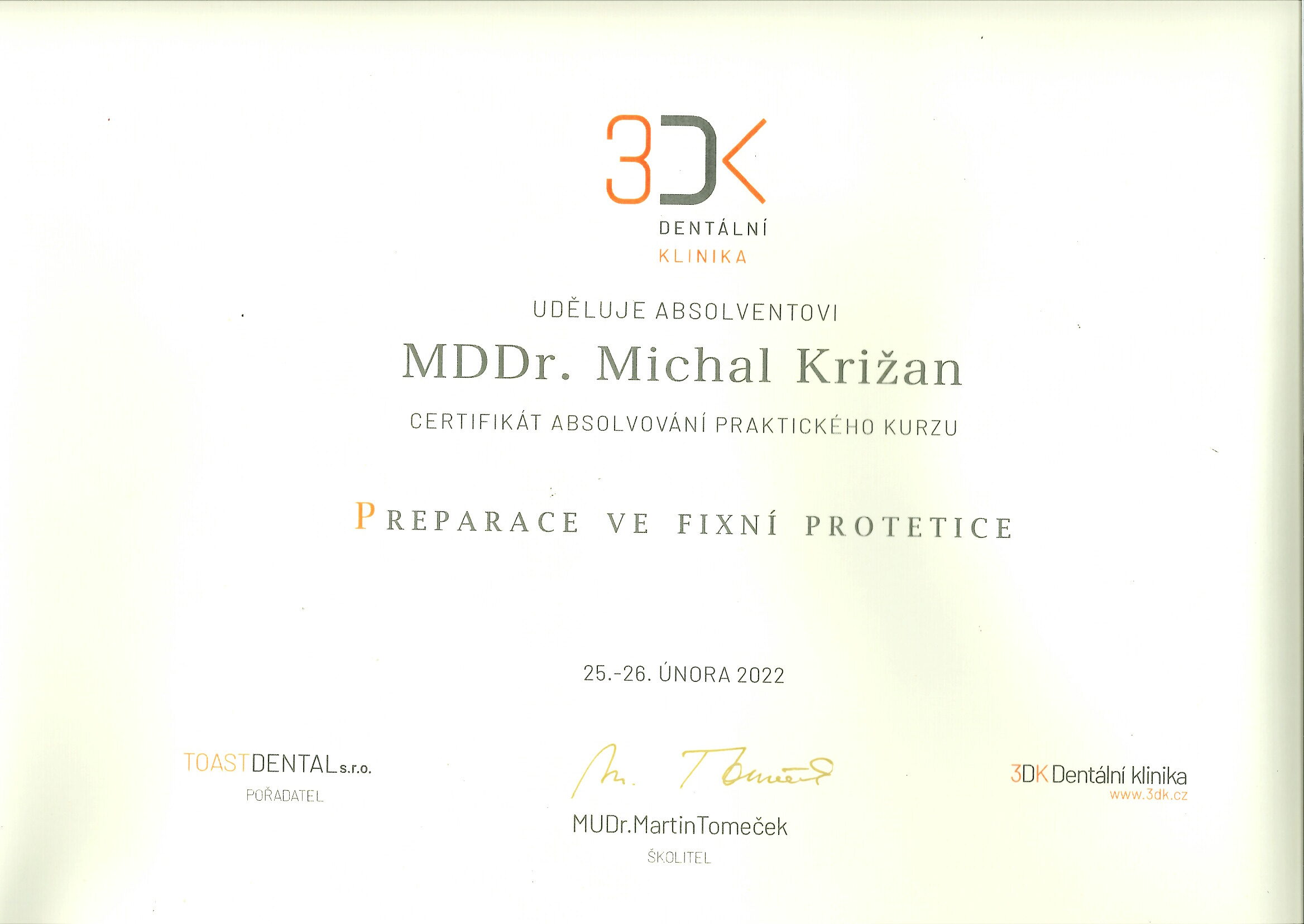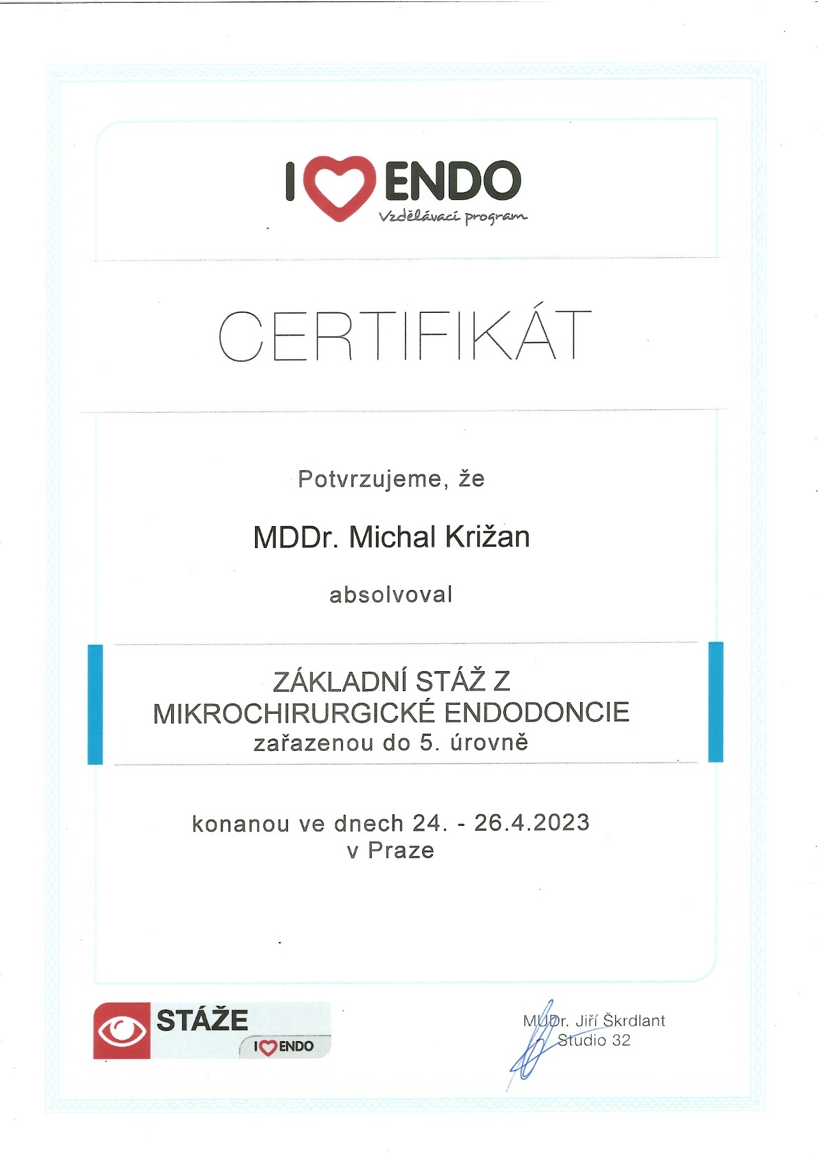 Rodné kořeny Dr. Michala Križana sahají na západ Slovenské republiky do města Senica. Zde vystudoval gymnázium a za místo svého dalšího studia si zvolil Olomouc. Lékařskou fakultu Univerzity Palackého ukončil s vyznamenáním v oboru zubní lékařství a již během studia navštívil řadu odborných kurzů a stáží.